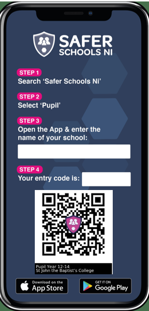 Please download the Safer schools NI app and scan QR code for yr12 students.