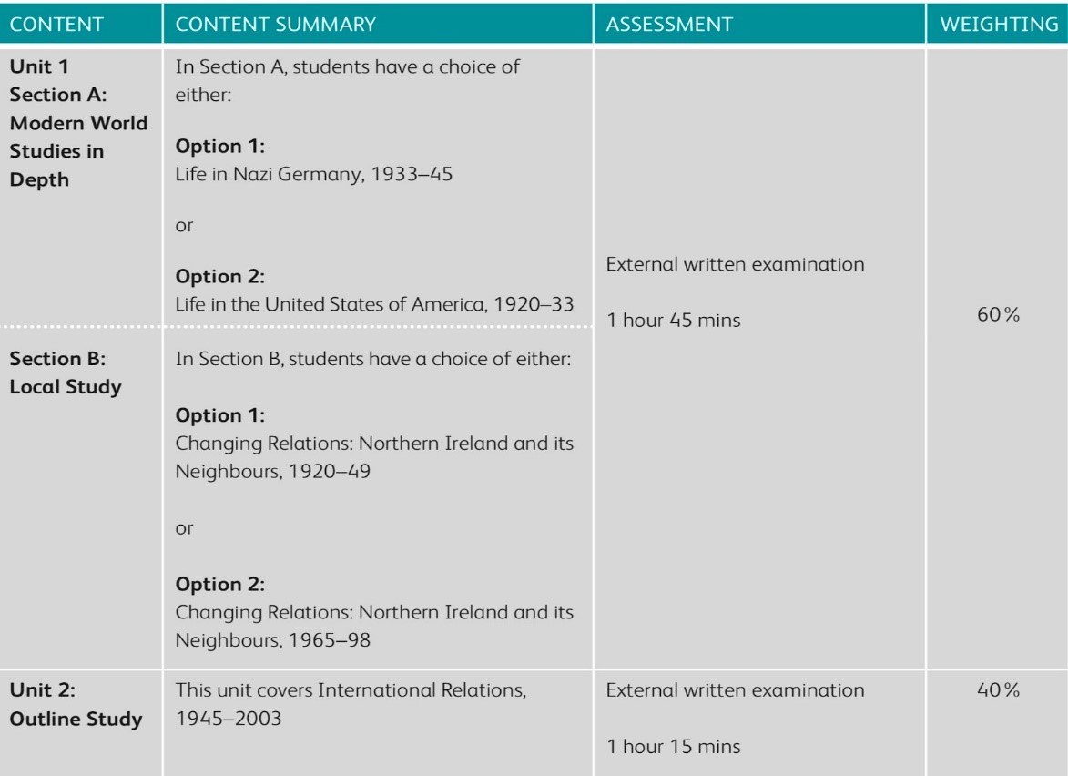 All pupils will study history from Medieval times through to the present day. British & Irish history provides the main focus for the course which includes the twentieth century and Britain's place in the modern world. It is our aim that pupils will develop their skills in analysis, evaluation, interpretation, critical thinking, problem-solving and through investigative and research techniques, all of which are tested during Curriculum Assessment and by eventually by GCSE and A-level examination