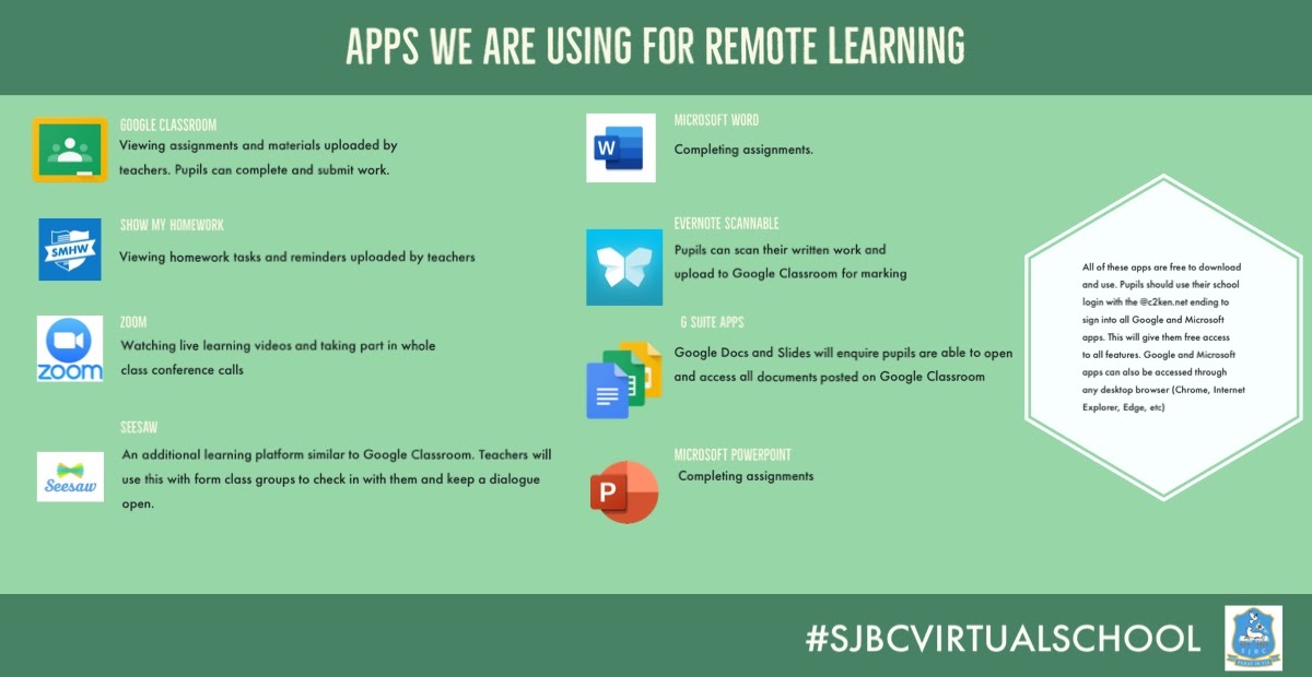 All pupils can access the full Microsoft Office suite of apps at home for free using their school login. See the infographic for guidance: