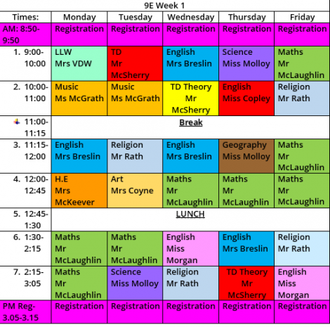 On the first day of school, your form teacher will give you your new timetable. They will go through it with you and help you to colour code it. This makes it a lot easier to read and understand.